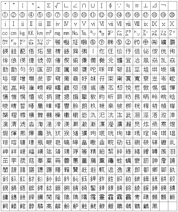 文字化けが発生する可能性がある文字の表